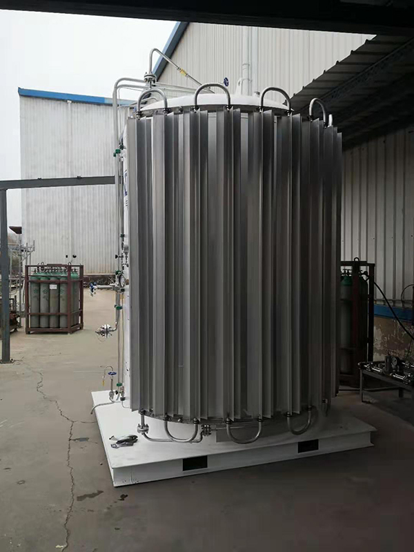 查看客戶廠區所有的適合安裝的位置,推薦使用快易冷+二氧化碳瓶裝氣現場混配的方案,快易冷的占地面積較小,不需要做氣站基礎,使用小型槽車充裝,二氧化碳安裝匯流排,設置自動切換裝置。
